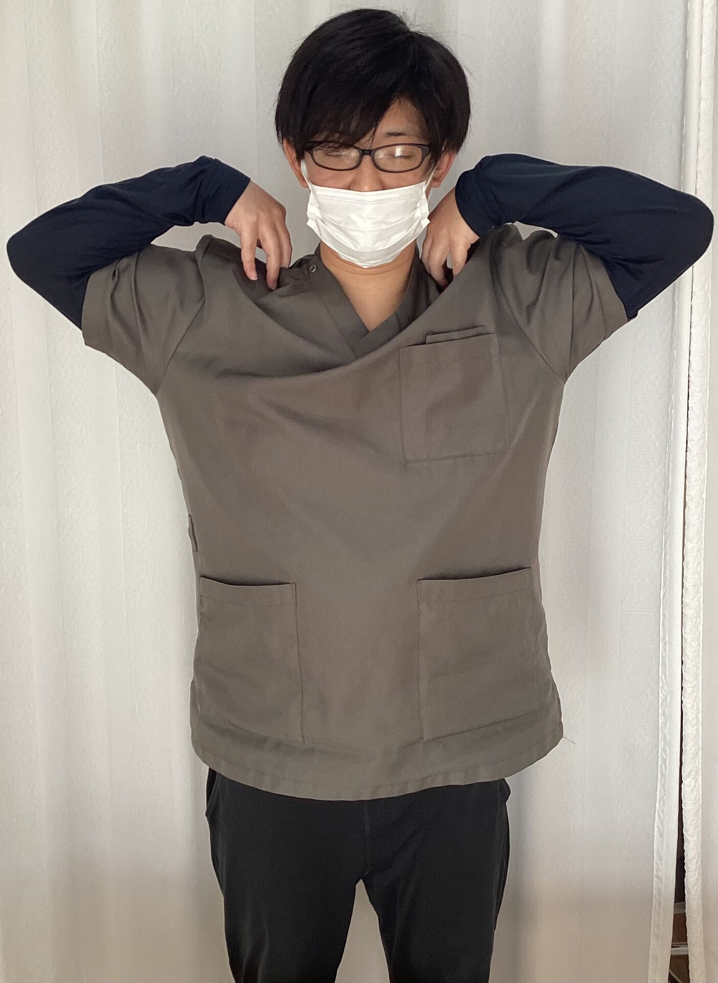 まずは、ストレッチを始める前に軽く肩を温める動きをしていきましょう。