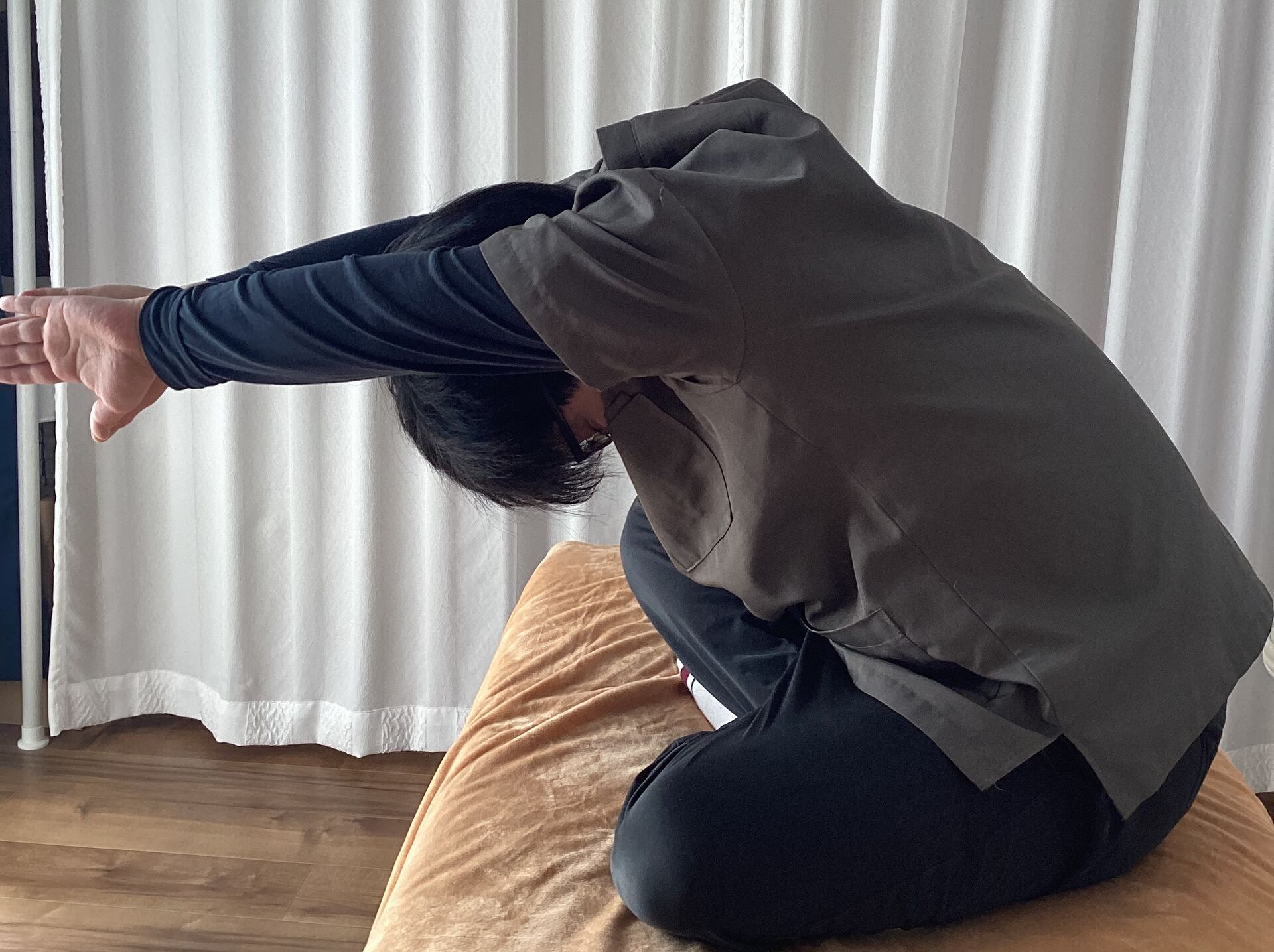肩のストレッチは、姿勢維持など普段の生活に大きくかかわってくるので最初にご紹介しました。