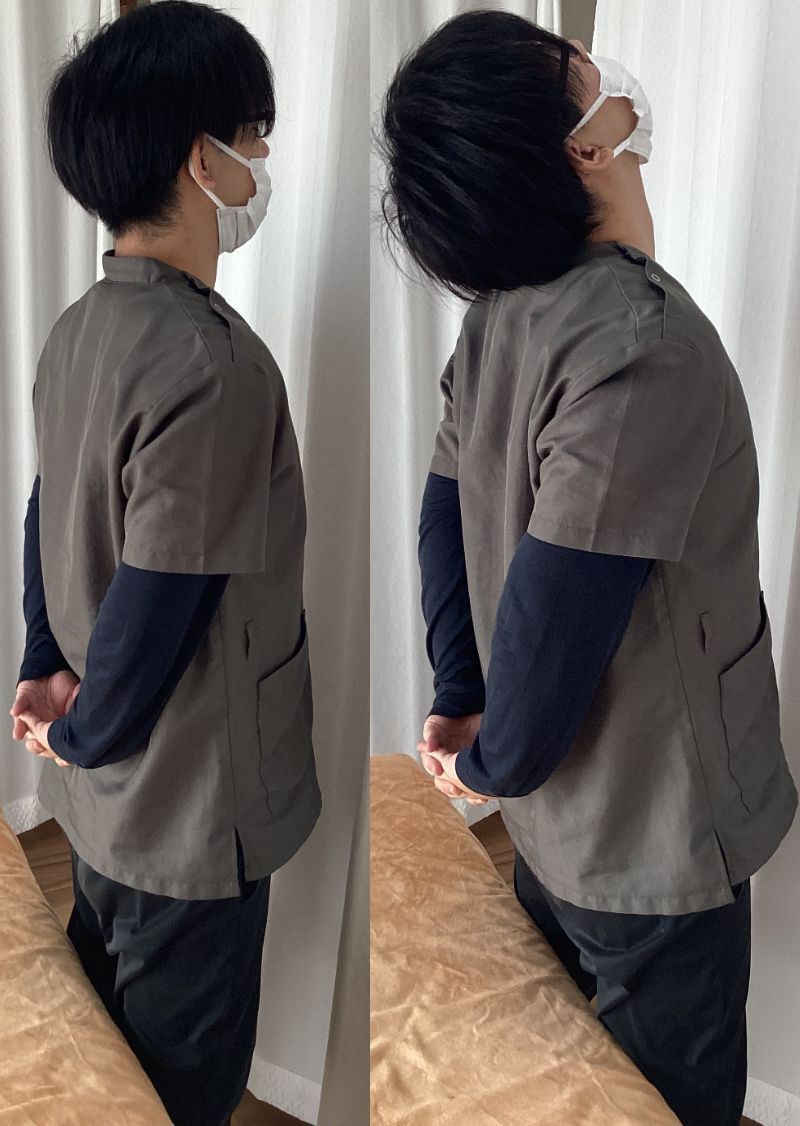 首の側面~後部が伸びている感覚を感じるように行ってください。