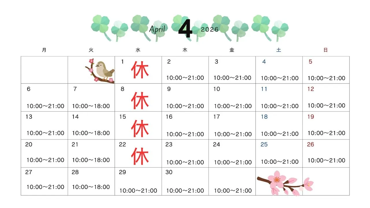 4月のカレンダー更新しました!